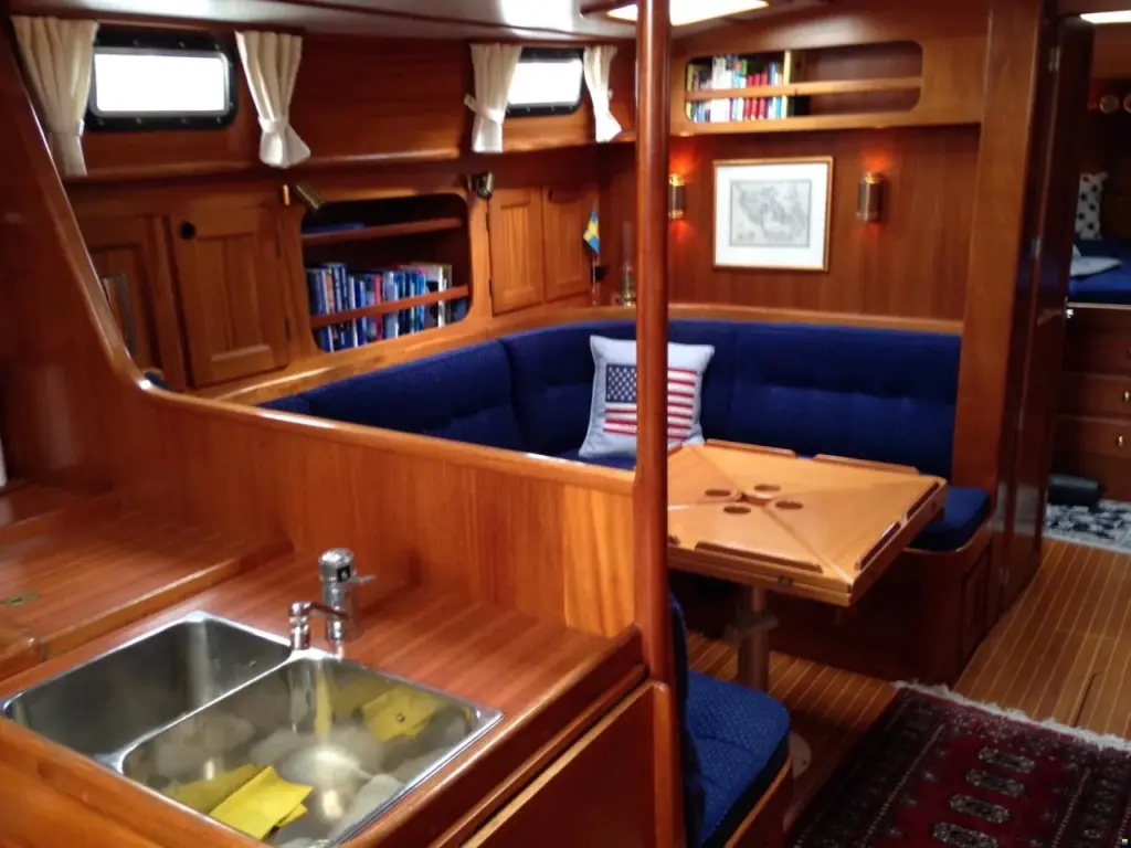 Unsere Malö 42 „Naurulokki“ wurde 1993 gebaut. Wir sind seit Juli 2023 die vierten Eigentümer und begeistert von den guten Segeleigenschaften, dem Komfort an Bord und der Zuverlässigkeit. Eine grosse Eignerkajüte, eine separate Duschkabine, separate Gästekoje, 2 WCs, eine große Kombüse und ein Salon mit viel Licht geben uns das Gefühl eines komfortablen Zuhauses.